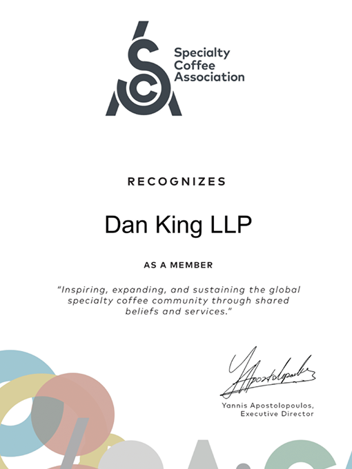 Компания Dan King аккредитована организацией Specialty Coffee Association (SCA)