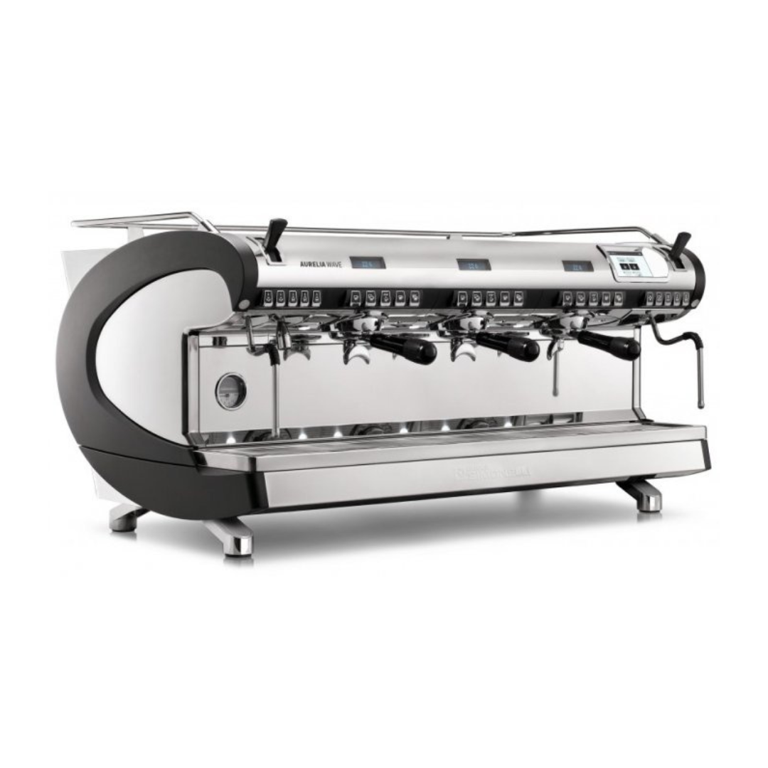 Традиционная автоматическая кофемашина Nuova Simonelli Aurelia Wave T3 3Gr с подключением к водопроводу предназначена для приготовления кофе эспрессо и капучино. Оснащена двумя высокими электронными группами, экономайзером, краном для подачи горячей воды, двумя трубками подачи пара Cool Touch и LED-подсветкой. Осуществляет автоматическое дозирование горячей воды и кофе. Бойлер изготовлен из меди, корпус из нержавеющей стали с вставками из ABS-пластика (на выбор предлагаются два цвета – чёрный и жемчужный).