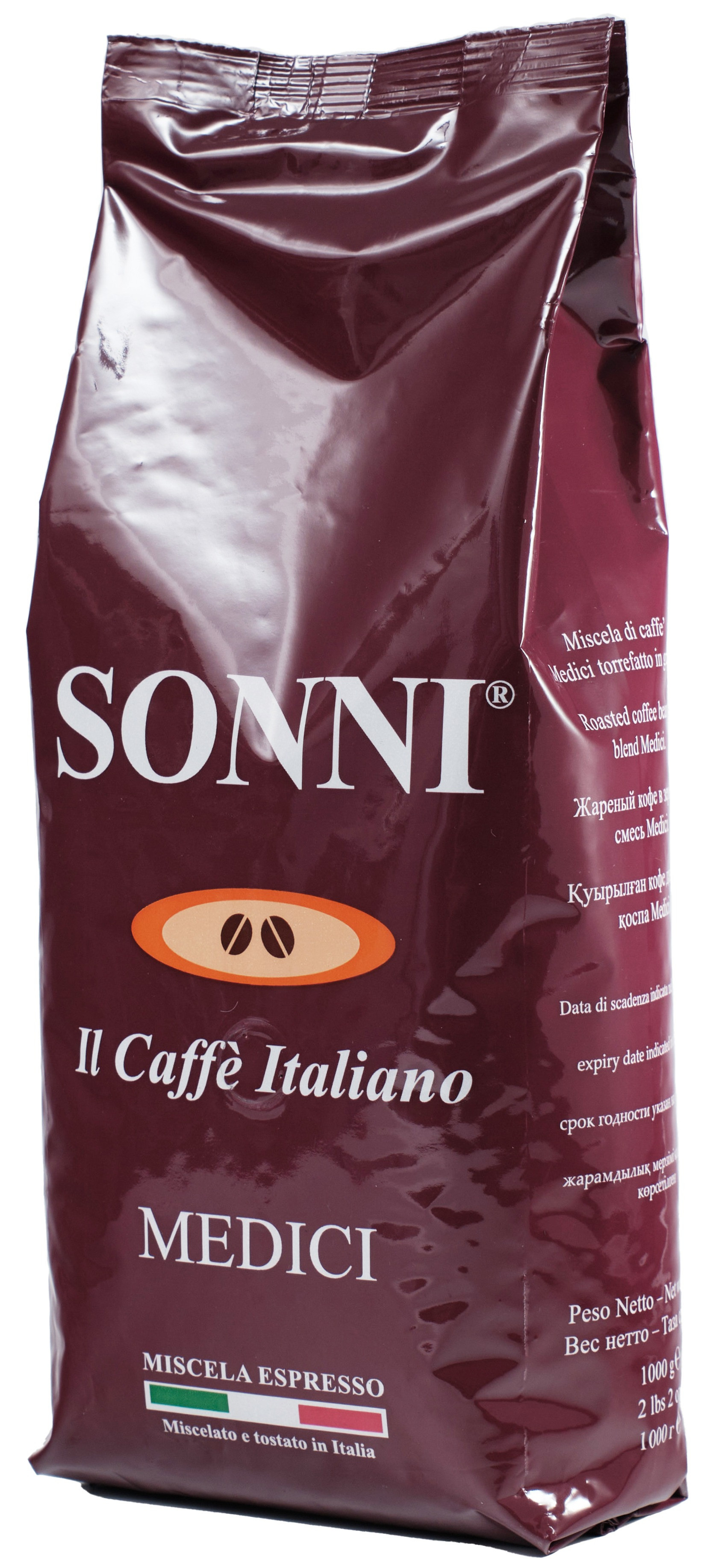 Кофе в зернах SONNI «MEDICI» - смесь, состоящая из 100% арабики. Фруктовый, слегка цветочный, темный шоколад, среднее тело