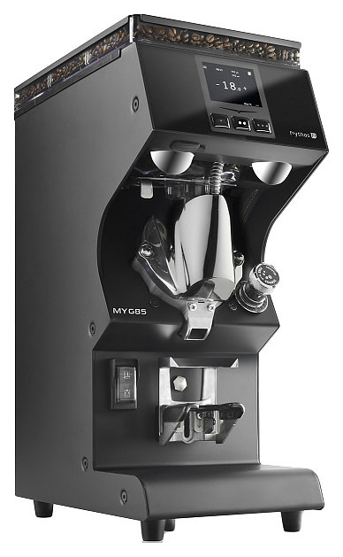 Кофемолка-дозатор Nuova Simonelli Mythos MY 75 предназначена для помола зерен кофе на предприятиях общественного питания и торговли, в гостиницах, офисах, а также домашних условиях. Модель оснащена фронтальной наклонной панелью с 3 функциональными клавишами и сенсорным жидкокристаллическим дисплеем управления и индикации (touchscreen). Корпус выполнен из нержавеющей стали с покрытием черного цвета, наклонная фронтальная панель – из черного стекла, бункер – из прозрачного пластика.